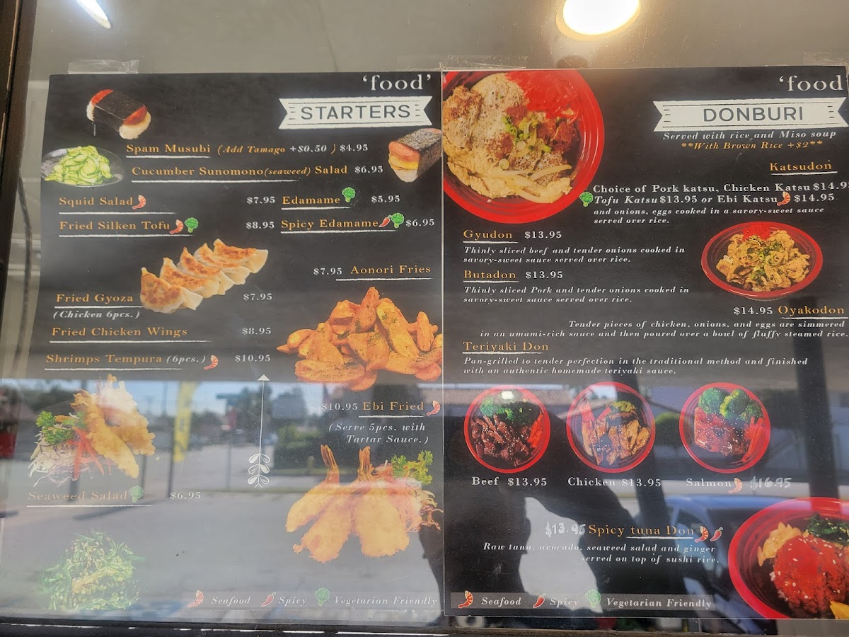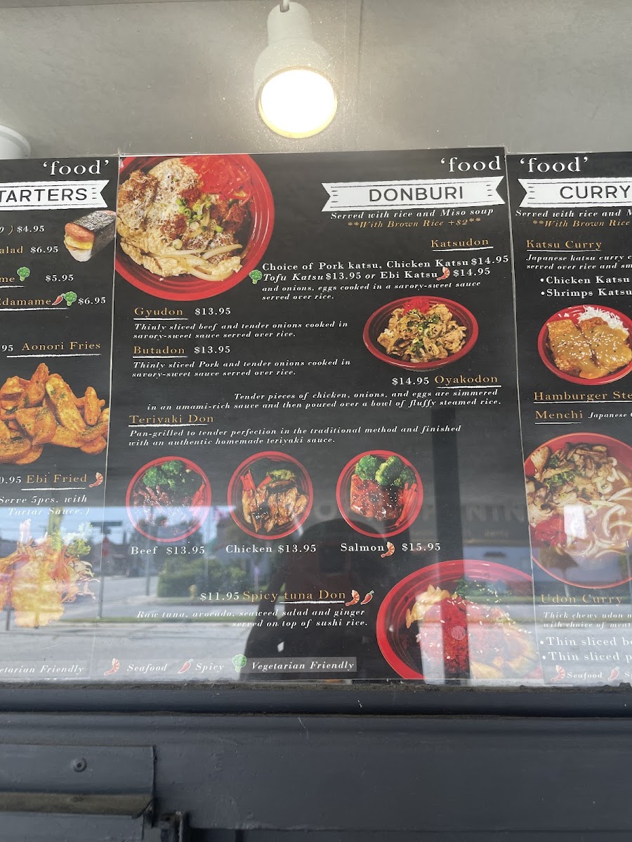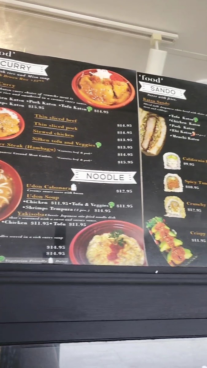 The menu at this Asian and Japanese restaurant features a diverse selection primarily focused on Japanese curry, katsudon, and traditional rice bowls. It offers a range of starters, main dishes, sides, and soft drinks designed for casual dining or quick to-go orders.
